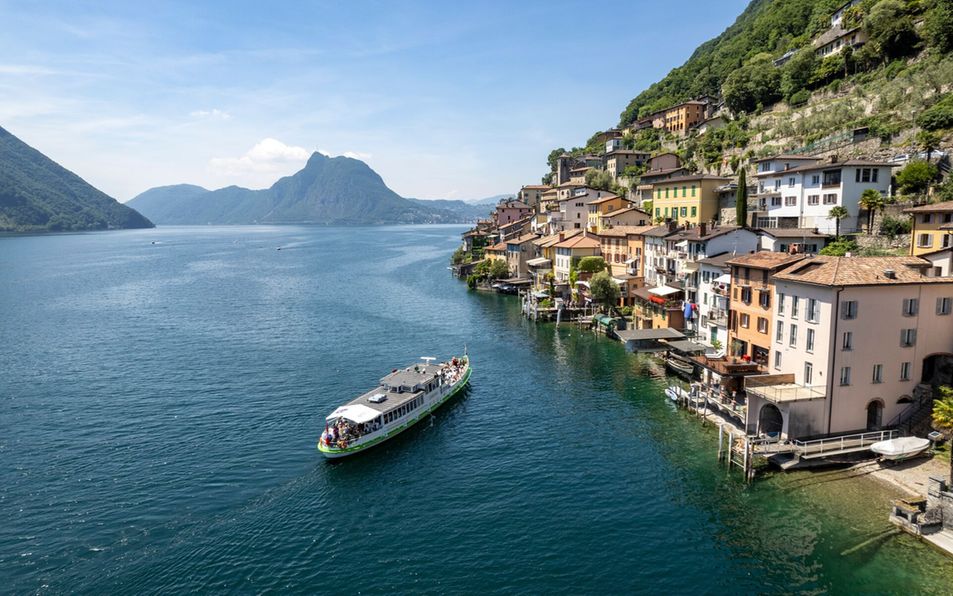 Brauciens ar kuģīti pa Lugāno ezeru no Lugāno pilsētas centra pāri ezeram līdz Gandrijai.