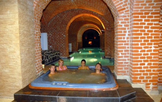 Pils baseinu, džakuzi ar hidromasāžu, saunu apmeklējums romantiskajās gotiskajās pils velvēs, arī kamīna gaismā... līdz plkst. 22:00 (skatīt).