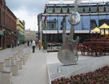 Latvijas mūziķu Slavas aleja tika atklāta 2006. gadā. Alejā apskatāmas 35 plāksnes ar mūziķu plaukstu atlējumiem bronzā, 10 plāksnes esošām un bijušām mūzikas grupām un 5 plāksnes mūziķiem, kas šobrīd diemžēl savus zvaigznes ceļus min jau aizsaulē. 2013. gadā Slavas aleja tika papildināta vēl ar septiņām "Slavas zīmēm". Divas plāksnes veltītas mūzikas grupām un piecas plāksnes - mūziķiem. Turpat blakus ievērības vērta ir arī Latvijā lielākā ģitāra.