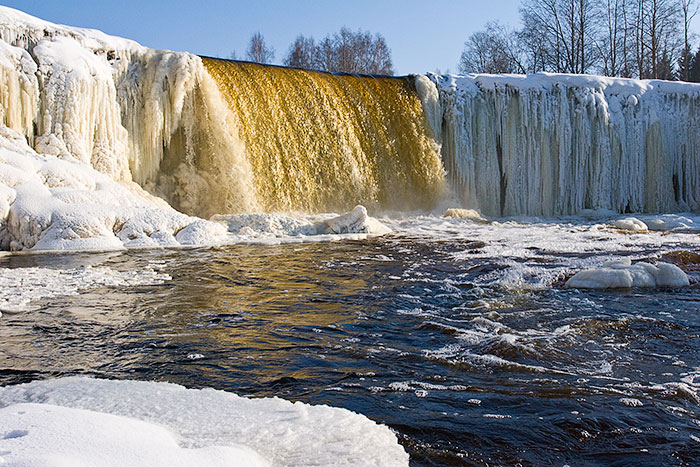 Romantiskais Keilas ūdenskritums, kas ziemā nereti pārtop ledus mežģīnēs... Augstums: 5.7 m (5.5 m terases centrālajā daļā un ap 6 m terases malās), platums: ap 50 m (kopējais ūdenskrituma terases platums)... Acis priecē jebkurā gadalaikā un arī filmā Vella kalpi! Ap ūdenskritumu un lejpus tā plešas viens no krāšņākajiem Igaunijas parkiem, šeit apskatāma arī neogotikas stilā celtā Keilas muižas pils.