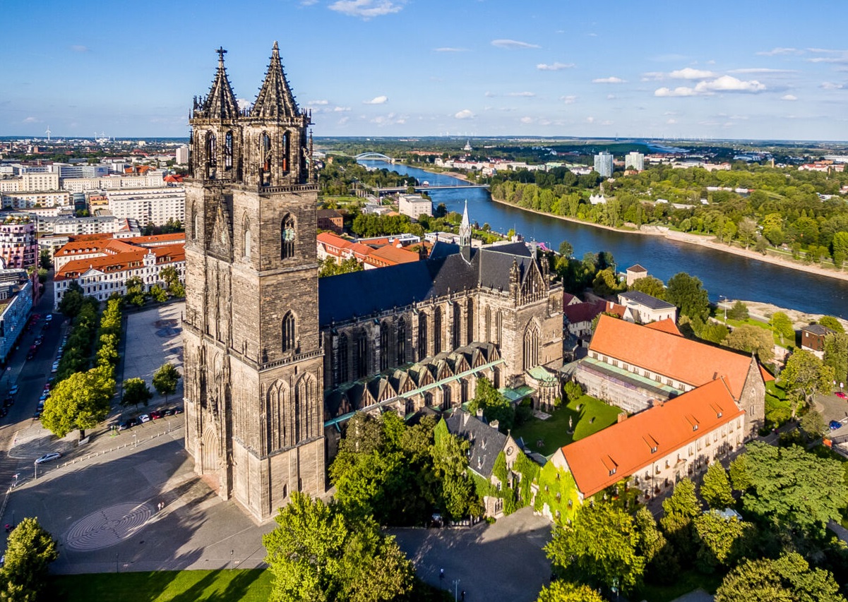 Magdeburga. Iespaidīgā gotiskā Doma (Sv. Maurīcija un Katrīnas) katedrāle. Rozīgā “Zaļā citadele” (Grüne Zitadelle), tā ir pēdējais arhitekta Frīdensreiha Hundertvasera projekts.