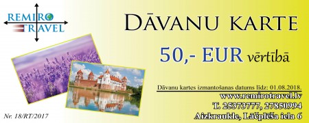 Piedāvājam iegādāties mūsu dāvanu karti par Jums vēlamo summu vai uz jebkuru ceļojumu.